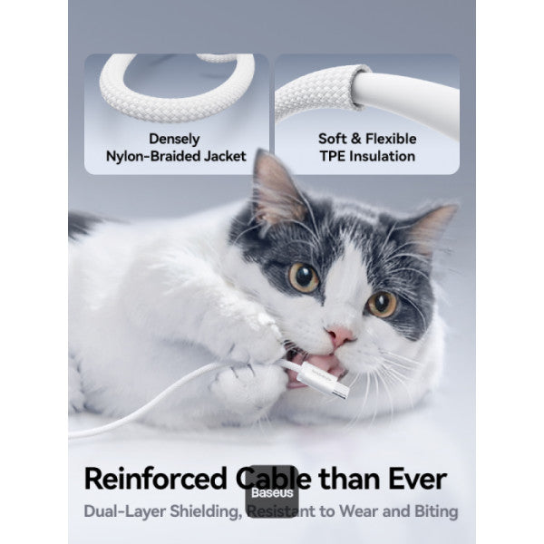 Baseus Dynamic 4 Series Type-C to Type-C Cable - 100W PD Fast Charging & 480Mbps Data Transfer Cable iPhone 16 and iPhone 15 Nylon Braided 2M - Black